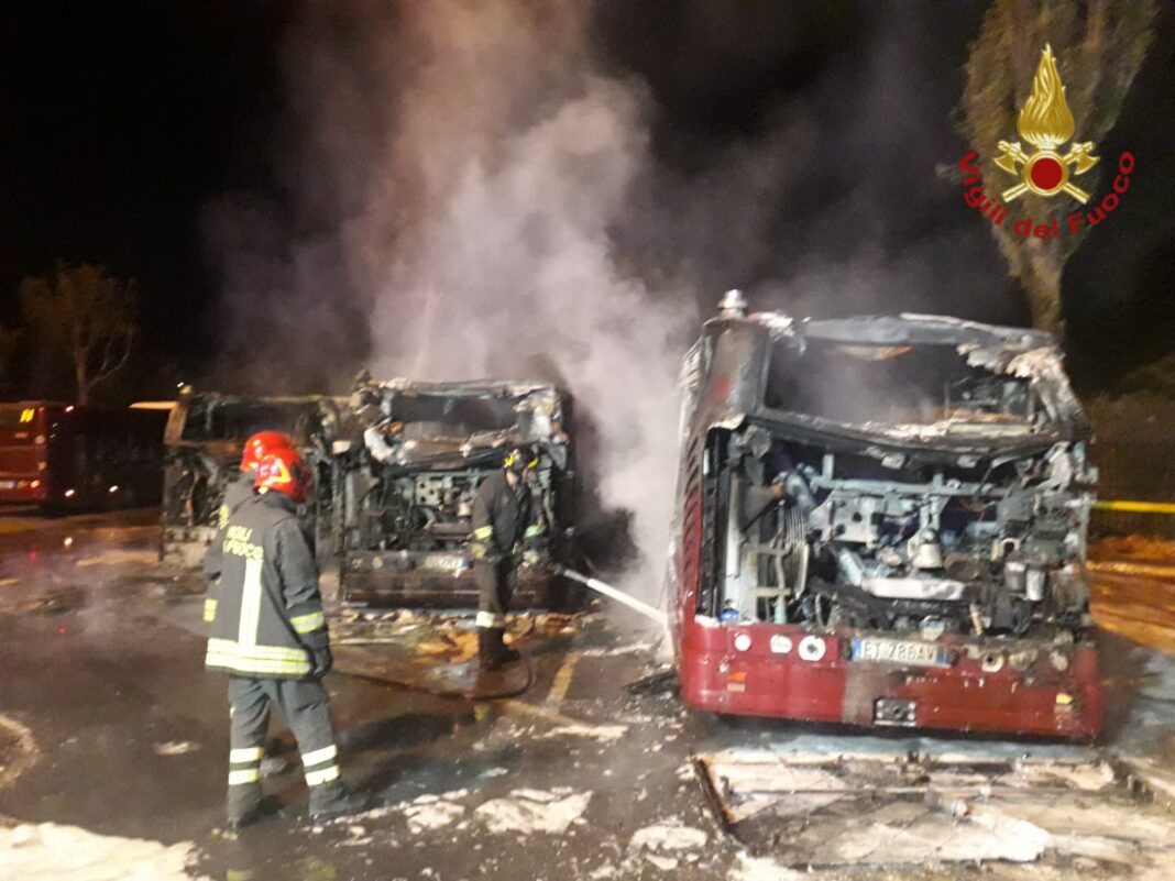 ROMA – La notte scorsa un incendio ha coinvolto tre autobus parcheggiati al deposito Atac di via Grottarossa. La notizia è stata resa nota dai Vigili del Fuoco che rendono noto che alle ore 04.30 del mattino, proprio al fine di spegnere le fiamme, la Sala Operativa a inviato presso il deposito due squadre (8A e 9/A) con un’autobotte, il carro schiuma e il carro auto-protettori, oltre il funzionario di servizio.