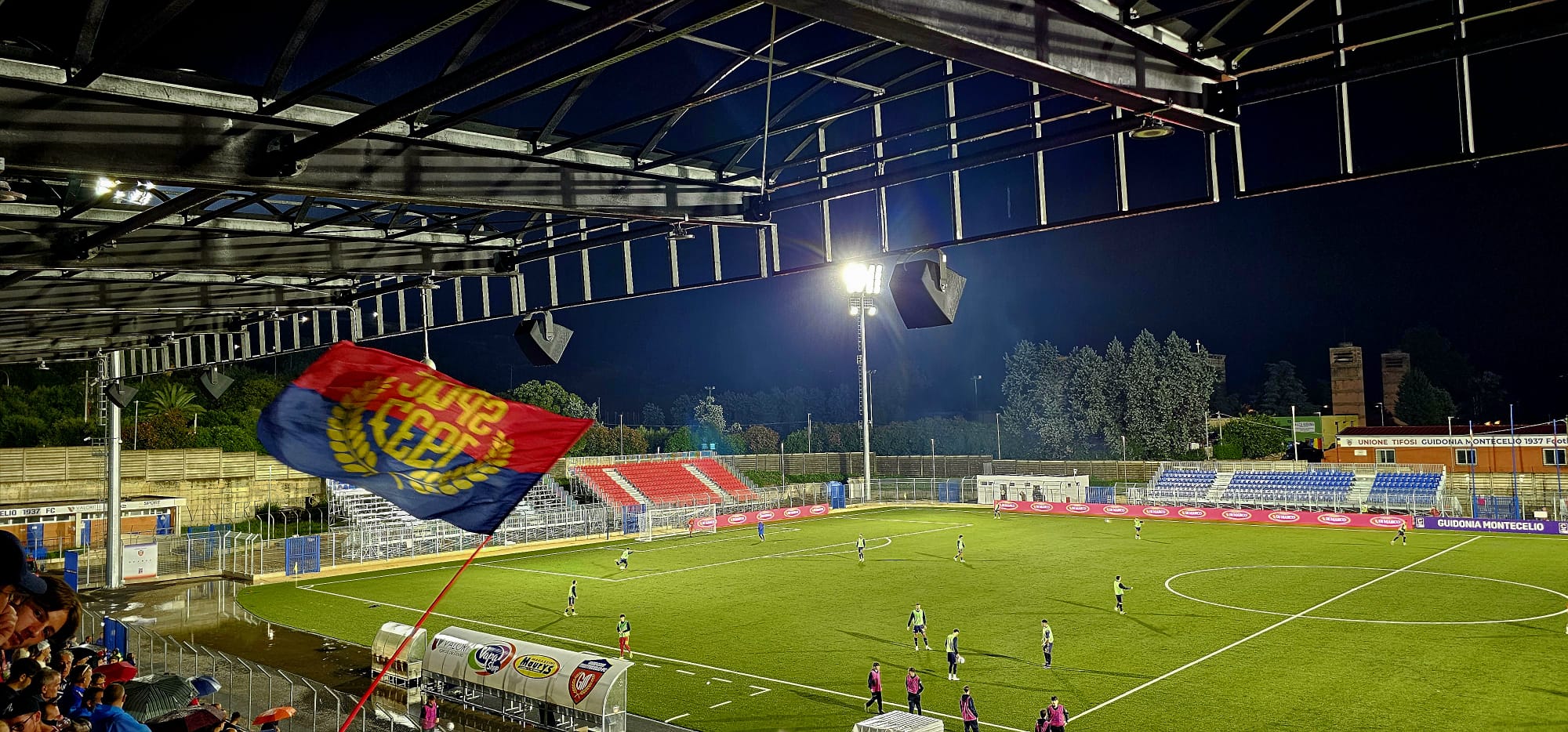 Per la 6^ giornata del campionato di serie C al comunale arriva il Rimini. Tanta pioggia al comunale Guidonia Montecelio, un ottimo primo tempo dei ragazzi di mister Ginestra, nel secondo tempo il ritorno del Rimini, ma il Guidonia Montecelio 1937 FC hanno cercato fino all’ultimo istante la vittoria. Determinante è stata la chiamata al Football Video Support di mister Ginestra, il direttore di gara dopo la revisione, nei minuti di recupero esattamente al 96° ha concesso un calcio di rigore realizzato dal bomber Aimone Calì classe 97 cresciuto nelle giovanili dell’AS Roma, dedica particolare alla figlia appena nata, un gol pesantissimo che ha steso il Rimini e regalato al Guidonia Montecelio 1937 FC tre punti d’oro, per la gioia di tutti i tifosi che nonostante la pioggia hanno riempito la tribuna e incitato tifato fino alla fine.