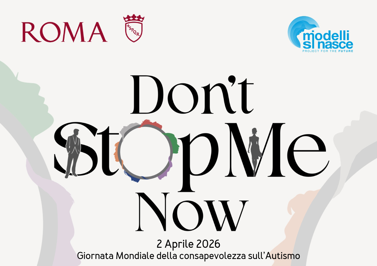 DON’T STOP ME NOW – 2 Aprile – ore 19:00 Palazzetto dello Sport – PalaTiziano Piazza Apollodoro, 10 Roma – MODELLI AUTISTICI IN PASSERELLA IN UNA SERATA UNICA ORGANIZZATA E PROMOSSA DALL’ASSESSORATO AI GRANDI EVENTI, SPORT, TURISMO E MODA DI ROMA CAPITALE CON L’ASSOCIAZIONE MODELLI SI NASCE